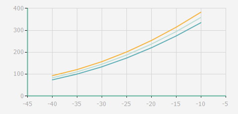 | 蒸发温度 | 制冷量+/-5% | 能耗+/-5% | 现在能效+/-5% | 气体流速+/-5% | 能效+/-7% | ||||